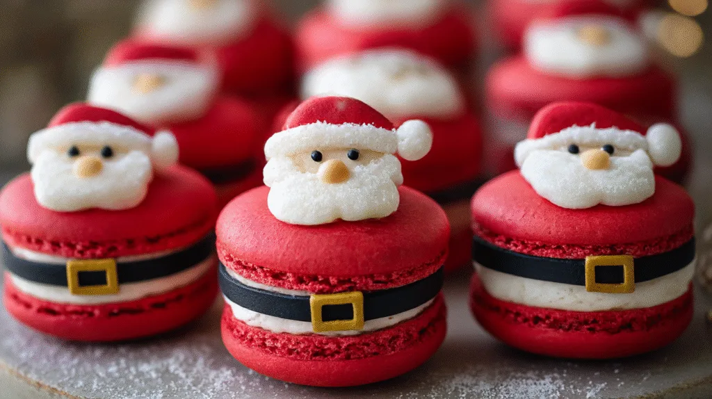 These macarons are not just cookies — they’re showpieces. Place a few along your Yule log or holiday cake for a whimsical Santa touch that impresses every guest.